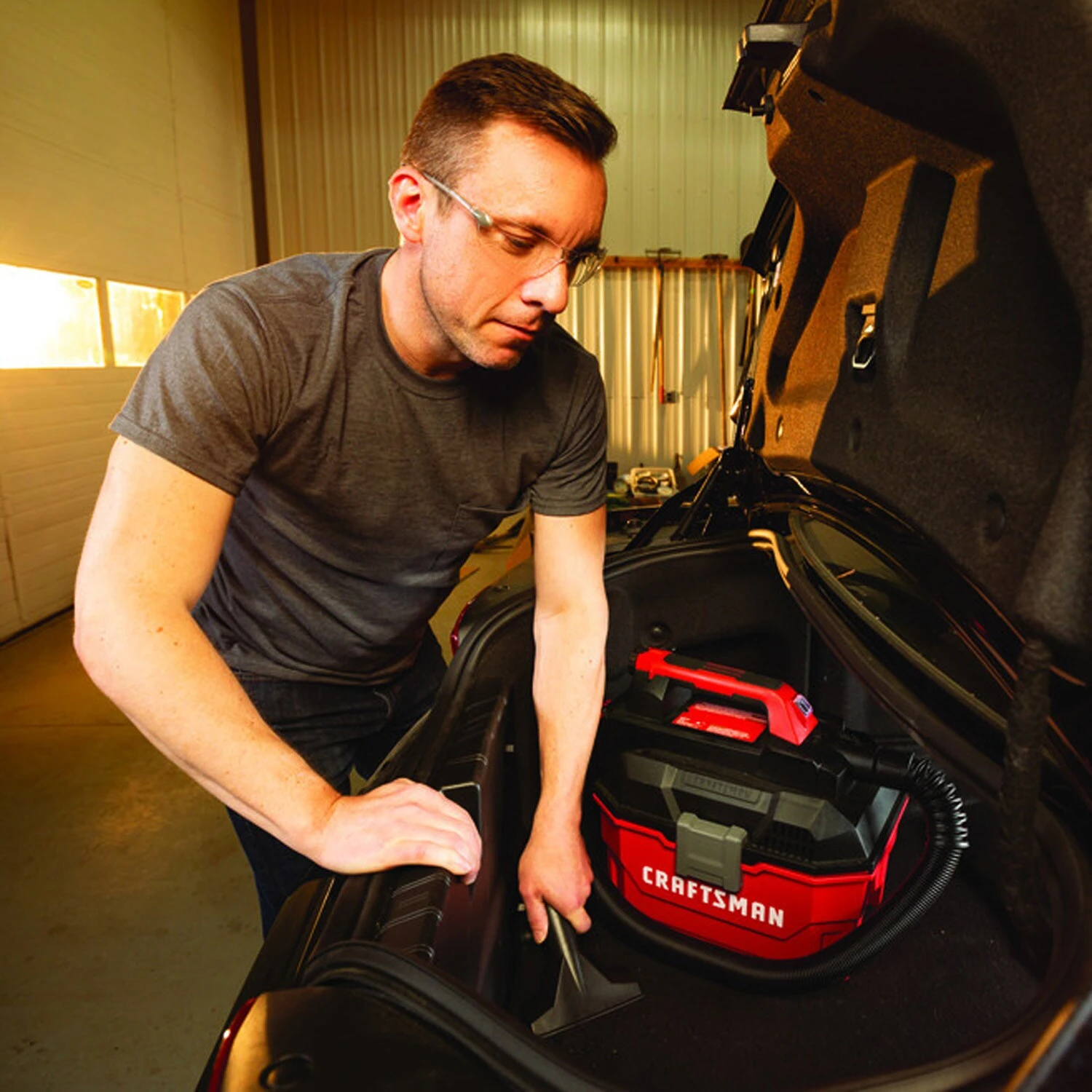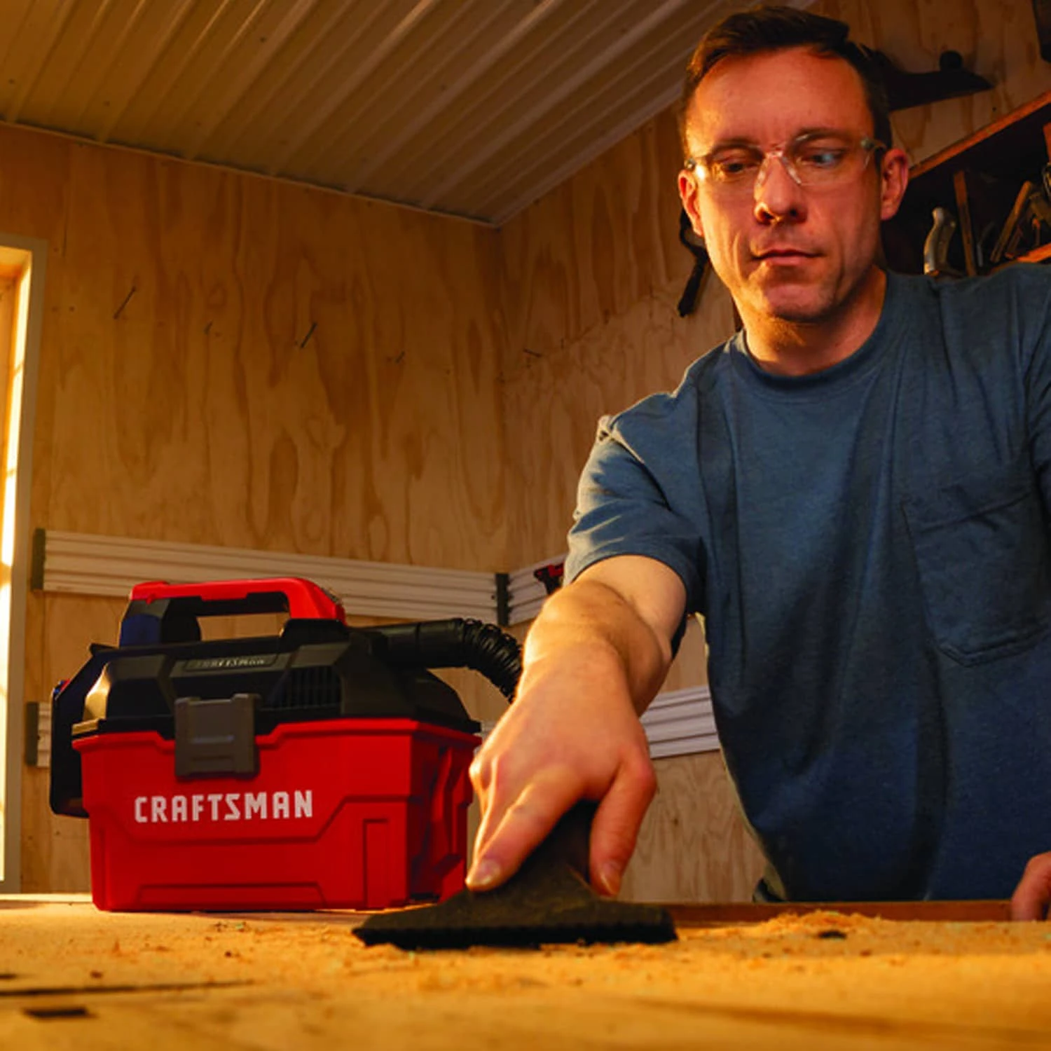 - Includes (1) CMCV002B 2 gal Wet/Dry Vacuum; (1) Wide Nozzle; (1) Crevice Tool; (1) HEPA Filter; (1) Hose; Battery and Charger Sold Separately