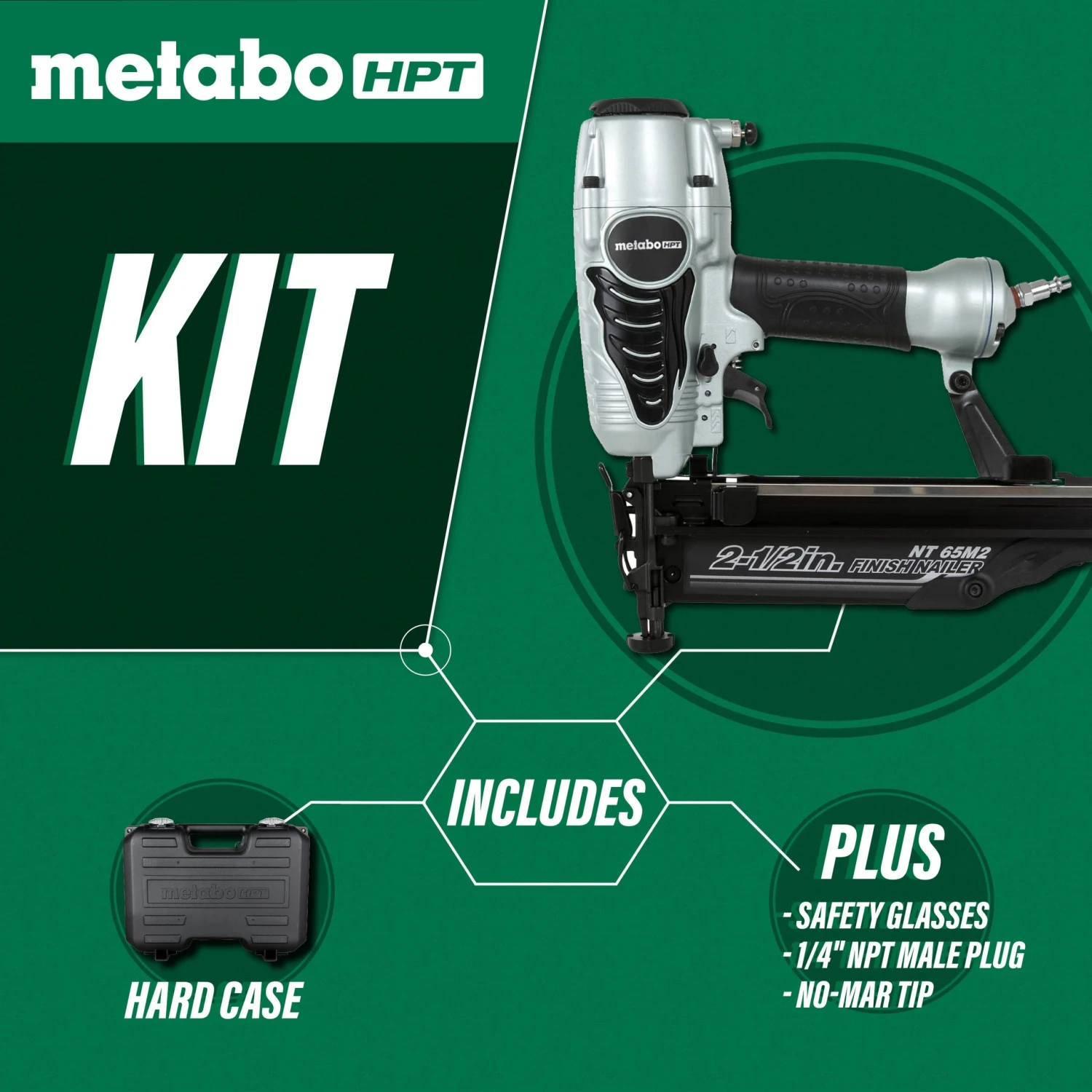 The NT65M2S 16-gauge finish nailer features a non-slip elastomer grip trigger and ergonomically designed simple flip actuation switch. It is ideal for installing molding, chair rail, cabinetry and other fine finish applications. The NT65M2S accepts 16-gauge finish nails in lengths ranging from 1″ Up to 2-1/2″ and is equipped with Metabo HPT’s signature air duster button to conveniently blow away dust and debris instantly to clear the work surface.