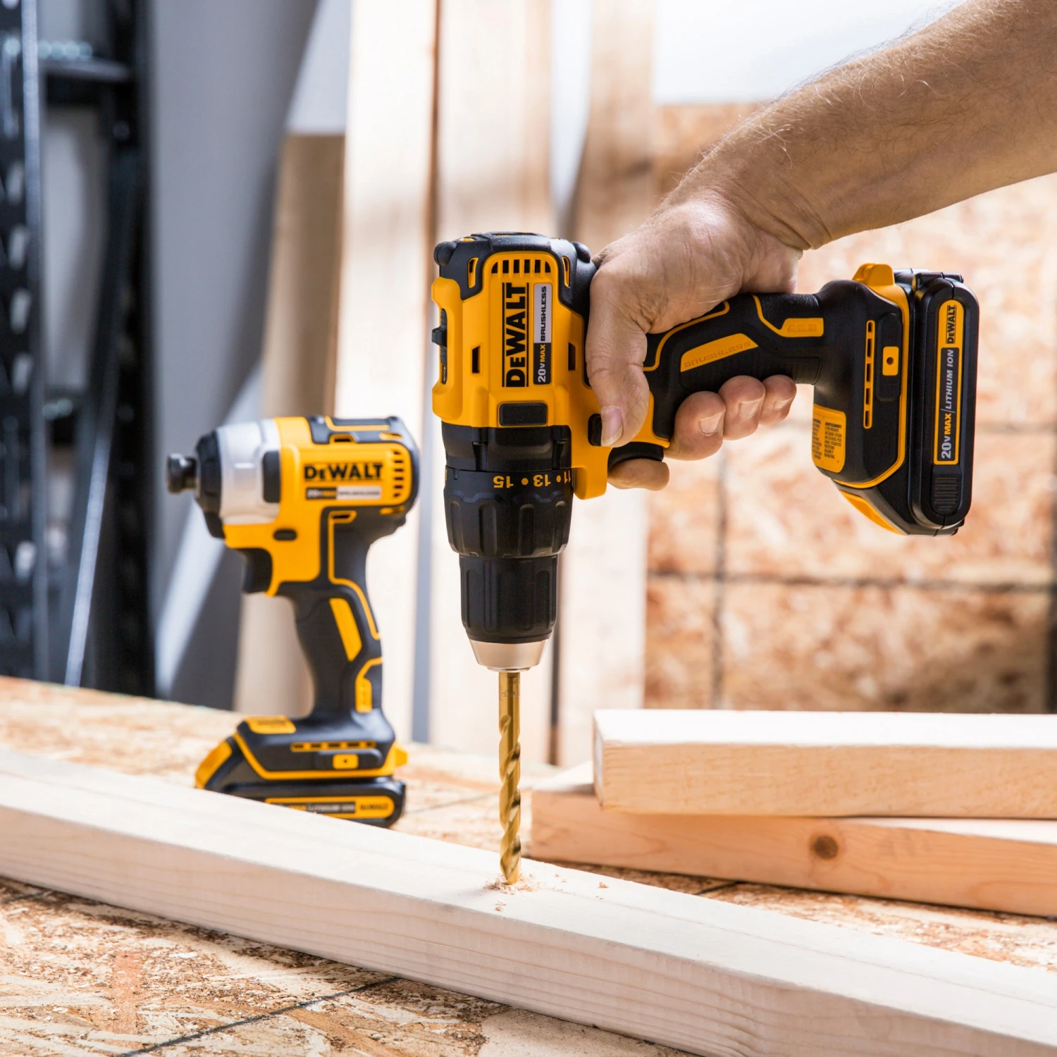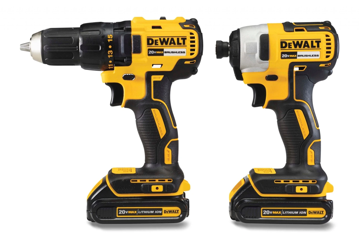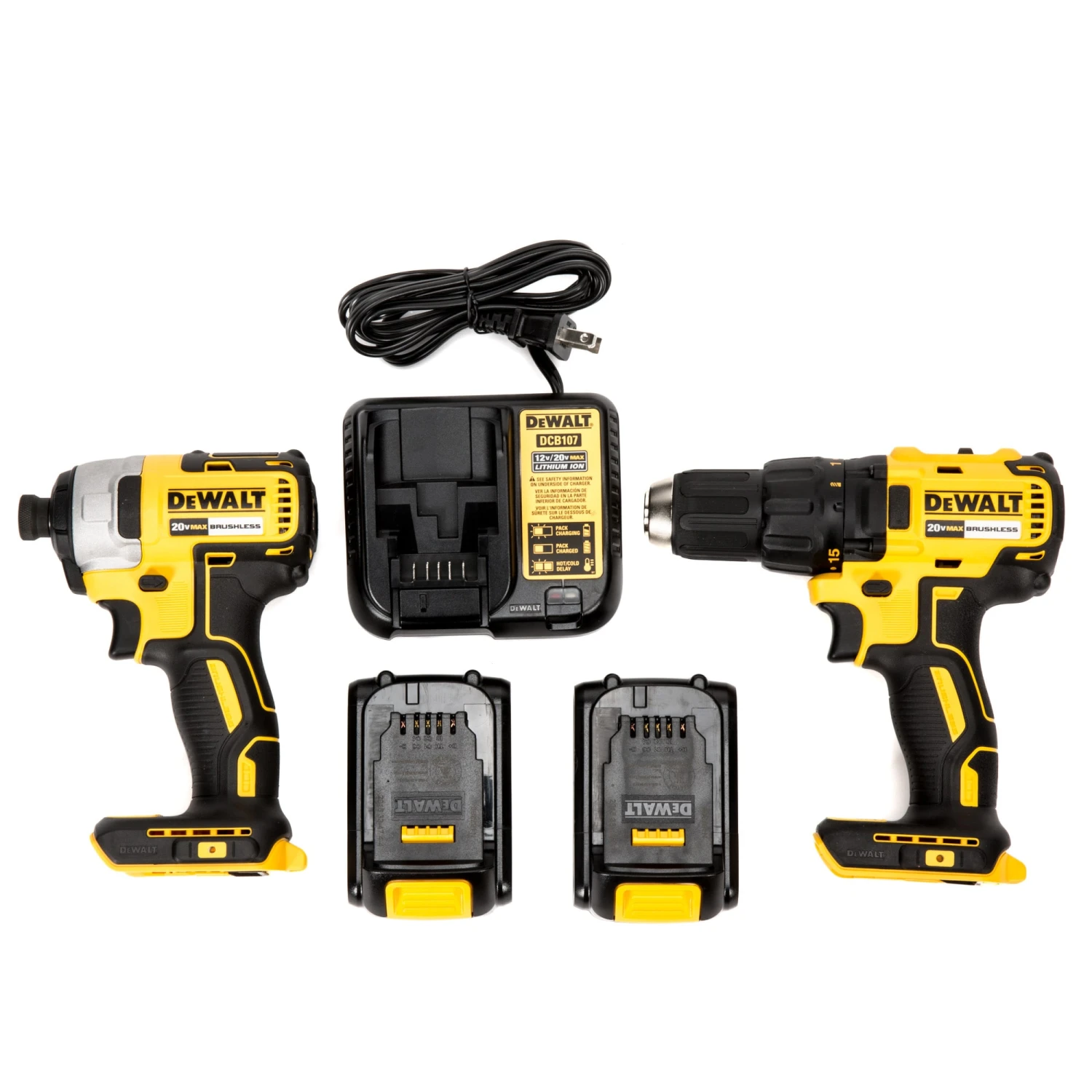 - Kit includes one DCD777 20V MAX compact Brushless drill/driver, one DCF787 20V MAX compact Brushless 1/4-in impact driver, two 20V MAX Li-ion battery packs, one charger and one kit bag
