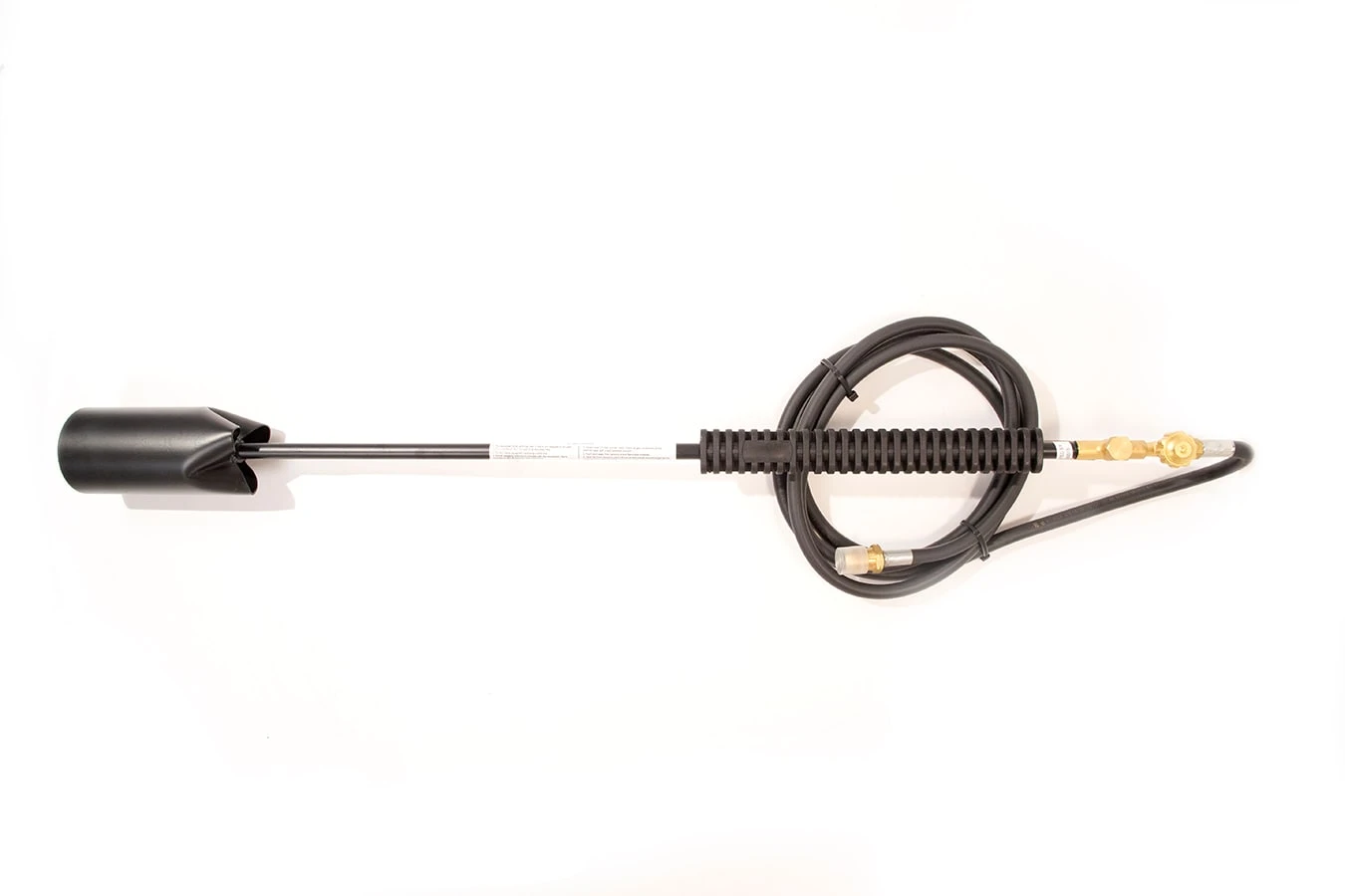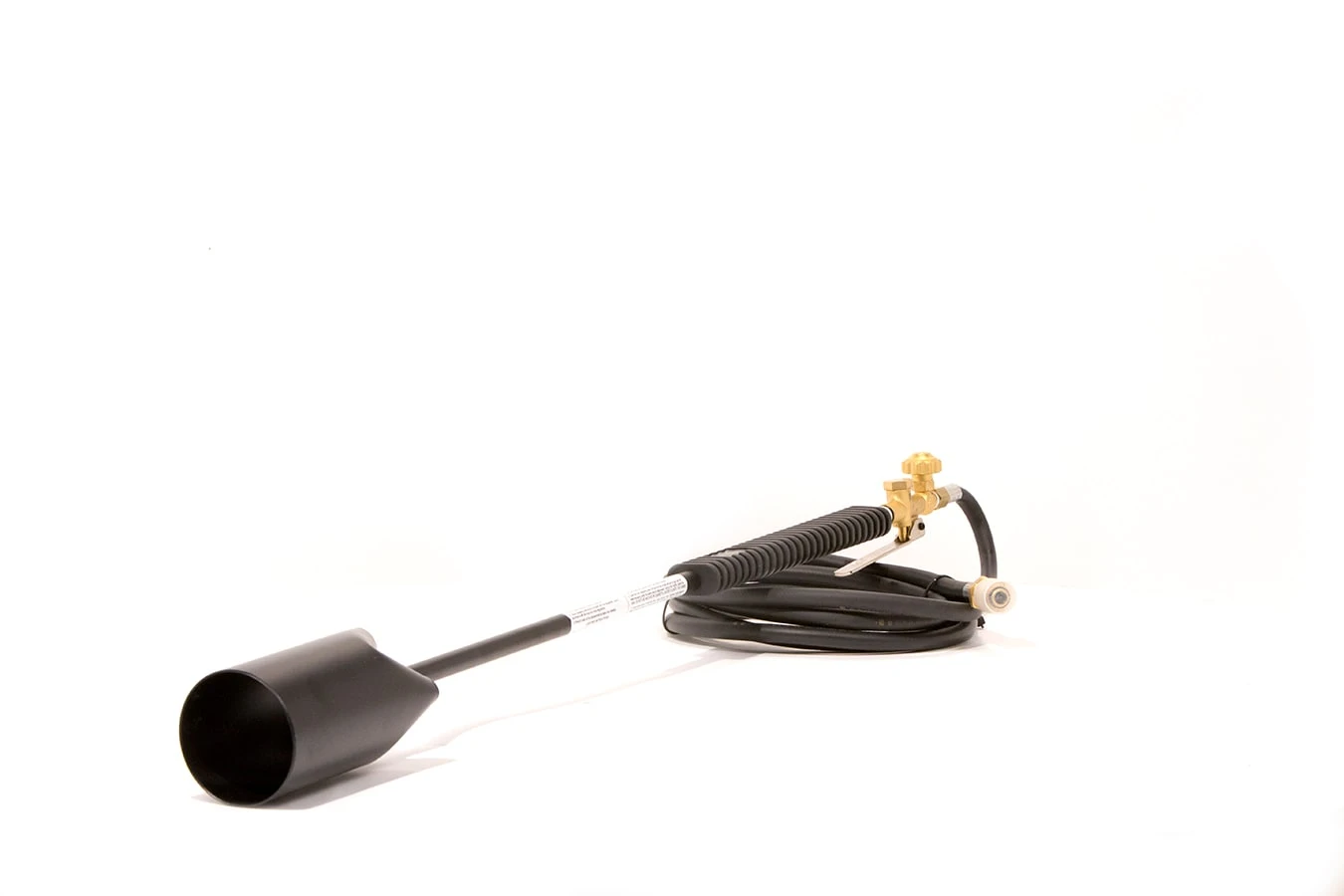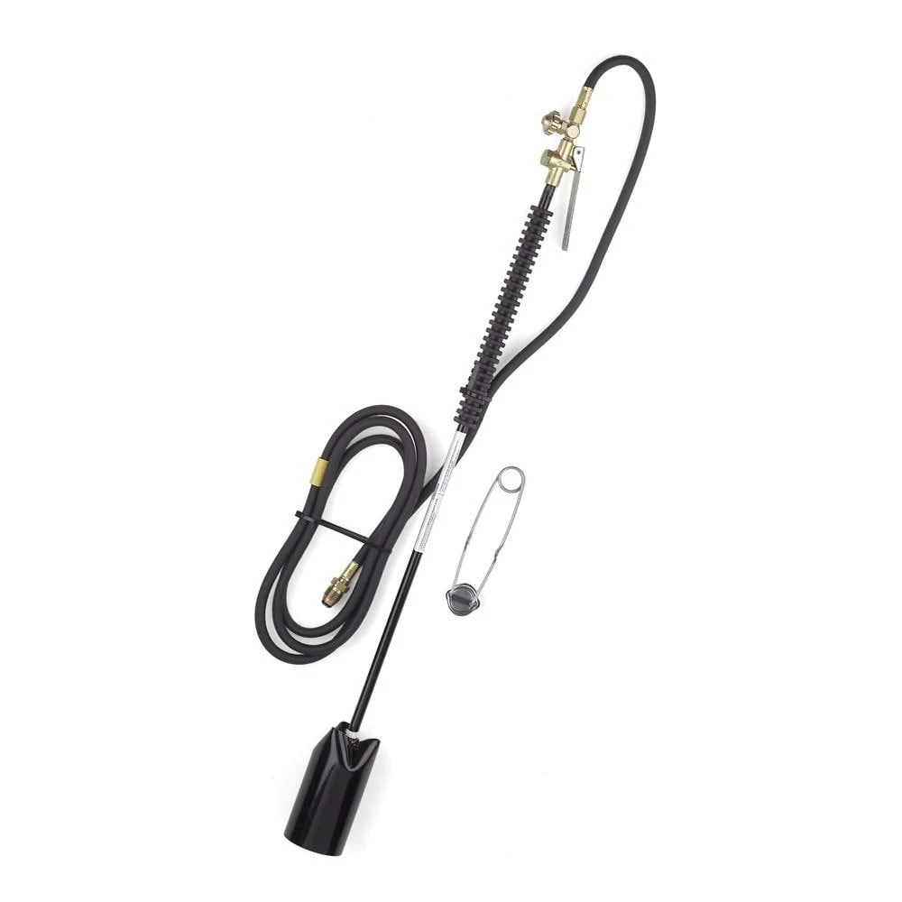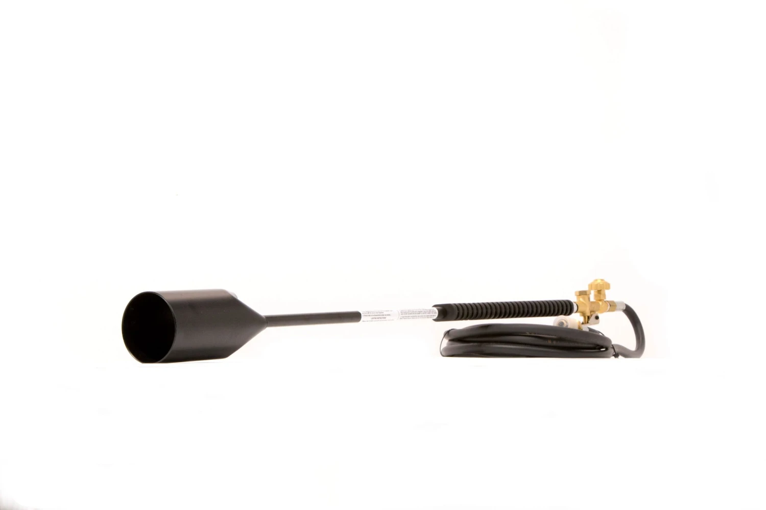 A 500,000 BTU, clean burning portable torch used to burn brush and weeds, repair road surfaces, remove paint, melt tar and asphalt, or remove snow and ice. Features include a molded handle, excess flow safety valve, 10 Ft. LP gas hose, striker, brass frame, adjustable valve and quick shut-off safety valve.