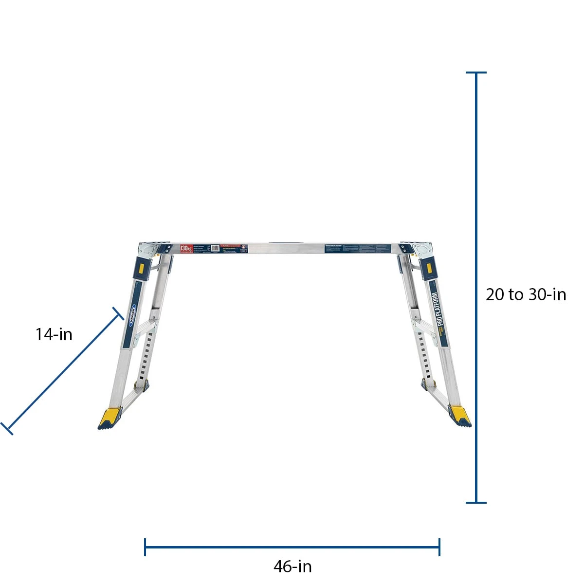 - Large 46in x 14in platform provides a wide standing platform for safety and comfort
