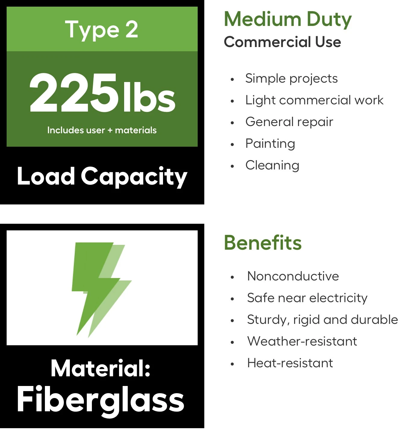 - Medium duty with a 225 lbs load capacity, you can tackle a variety of projects on the jobsite, or at home, like painting, hanging curtains and decorations, cleaning hard to reach places, renovations and more