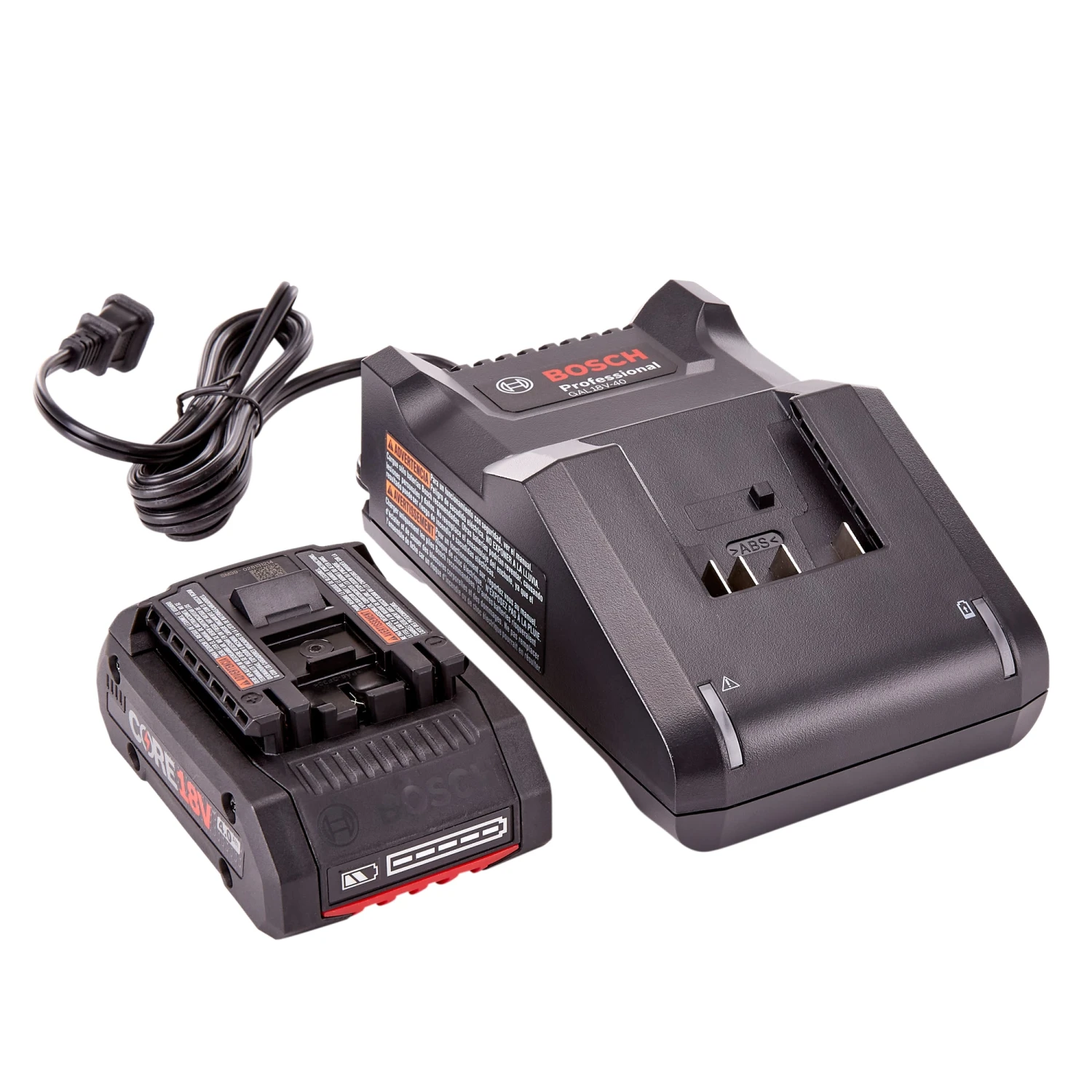 The Bosch GXS18V-15N15 CORE18V Compact Starter Kit delivers next-gen battery performance and a charger. The CORE18V Compact Battery is the next-gen Lithium-ion battery to keep the power and runtime, while losing the weight. Engineered with 21700 cell technology, the GBA18V40 single-layer battery matches the power from the original two-layer 4.0 Ah battery with improved performance per cell. The Bosch GAL18V-40 charger can completely charge a discharged CORE18V 4.0 Ah battery to 80% in 48 minutes and to a full charge in about an hour. This dual-stage charger charges the first 80% in standard charging mode and the remaining 20% in long-life mode getting users back to work quickly. It features charging indicator lights showing when the battery is in standard mode, long-life mode or finished charging. The battery provides exclusive CoolPack 2.0 technology to manage the heat of the higher power-density cells, and it provides better cooling than the previous 4.0 Ah double-layer versions.