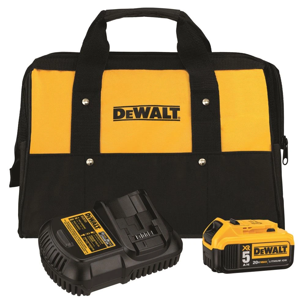 The DEWALT DCB205CK kit keeps your power tools running and productive. This kit includes a 5Ah 20-Volt MAX battery pack, charger and kit bag. The battery and charger are compatible with the entire line of DEWALT 20-Volt MAX Tools and accessories.