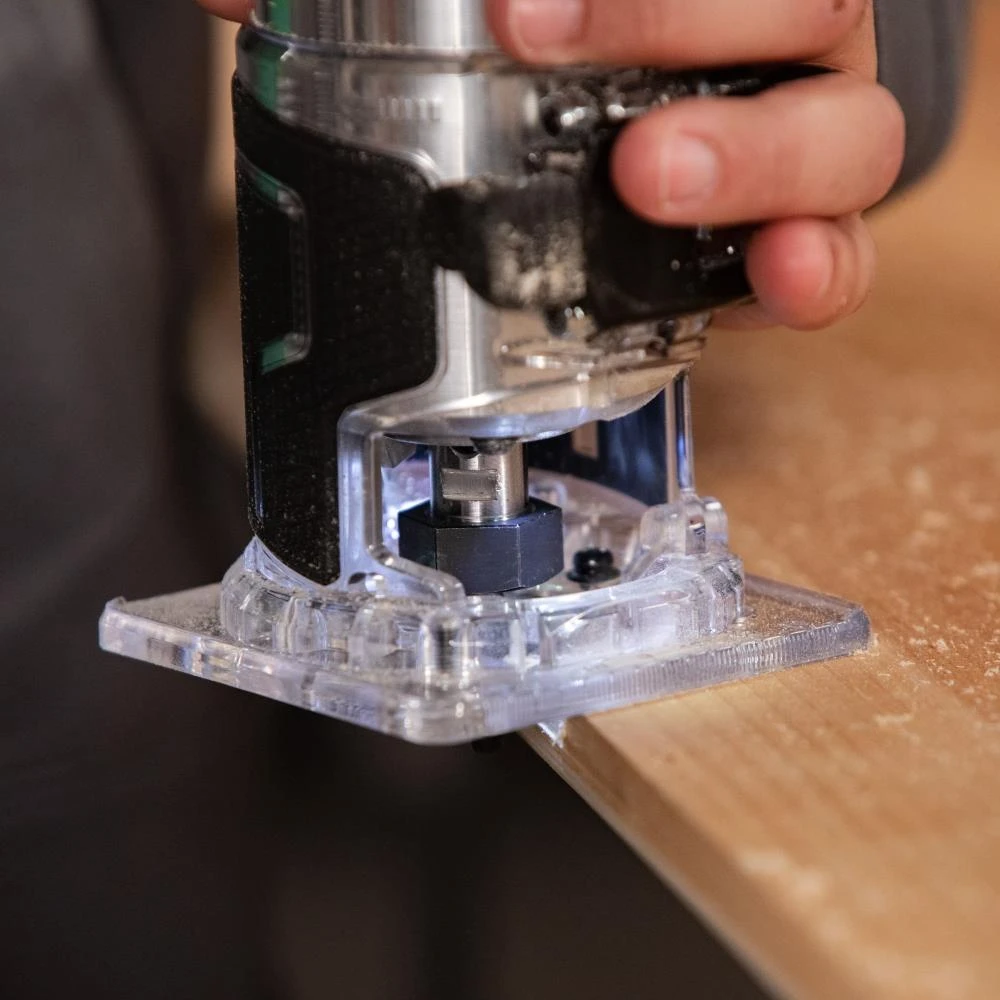 - SWITCH: Grip accessible one handed switch design allows user to turn router on and off while holding device and material