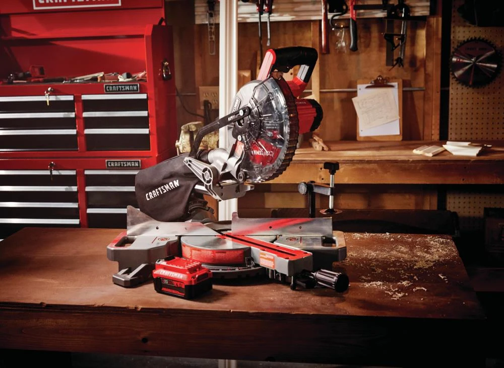 V20 7-1/4-in Cordless Sliding Miter Saw has a powerful motor designed for cutting 2x dimensional lumber, hardwoods, baseboard and trim with ease. The sliding 7-1/4-in blade allows for a cross cut capacity of up to 8-in while the 9 miter detents and single bevel blade allow for angled cuts. The LED light eliminates shadows and provides an accurate easy cut line to follow. With a lightweight design and side carry handles provides the user with additional portability.
