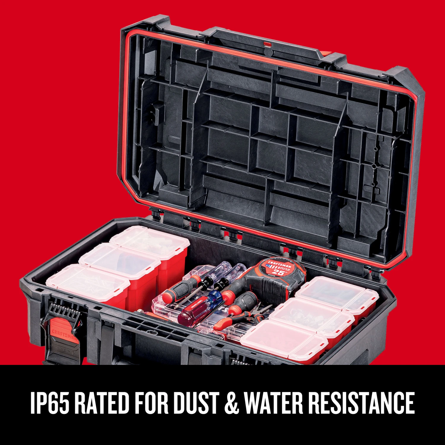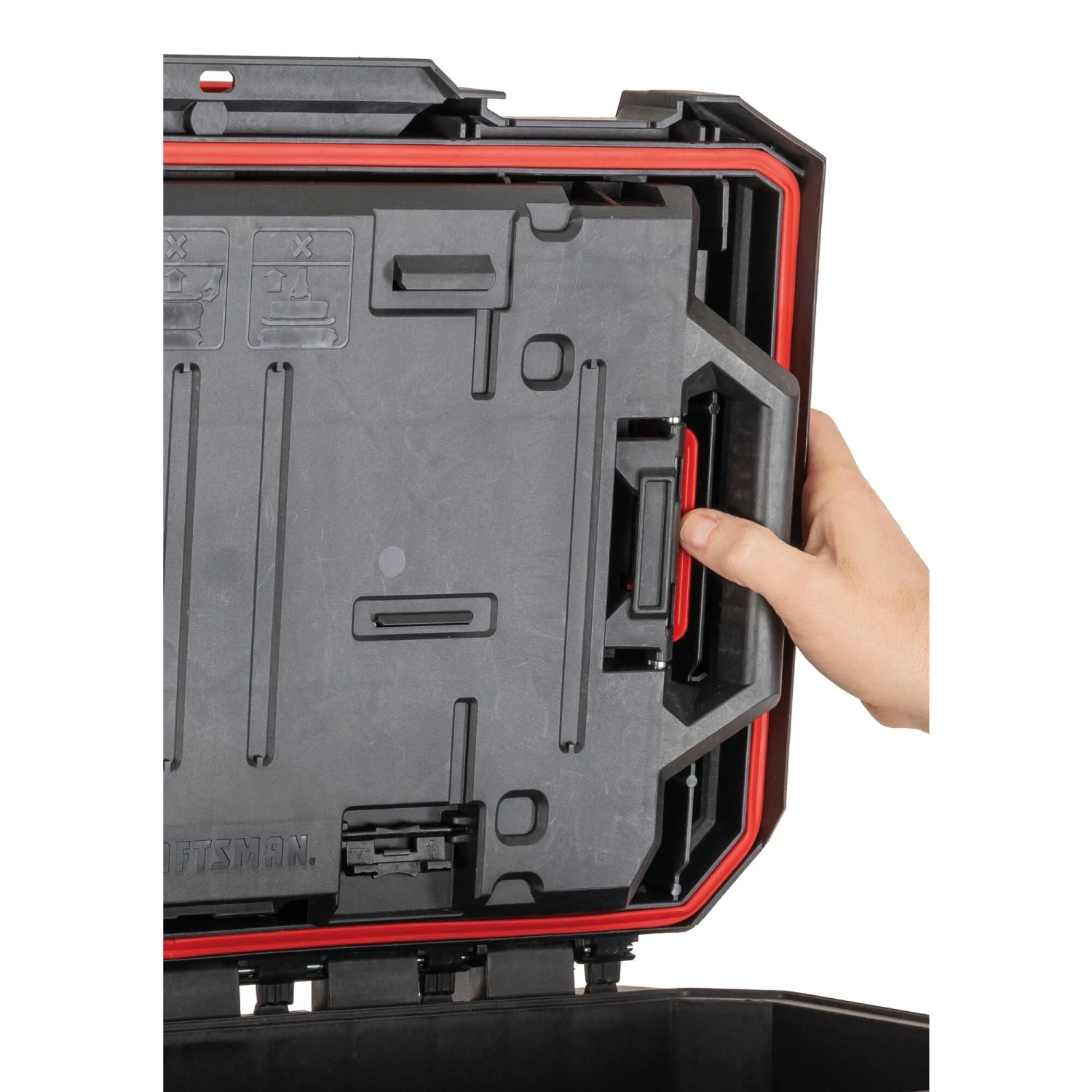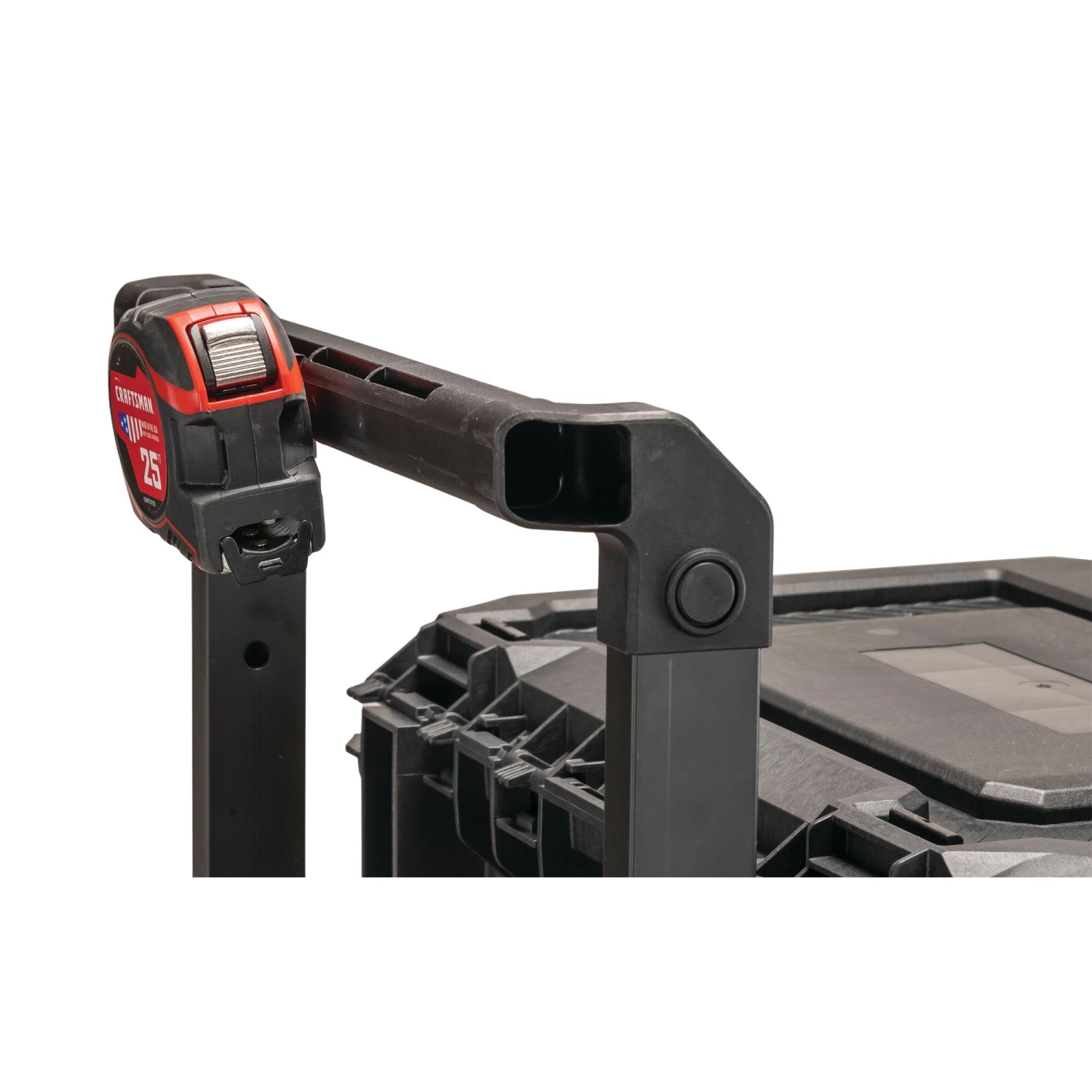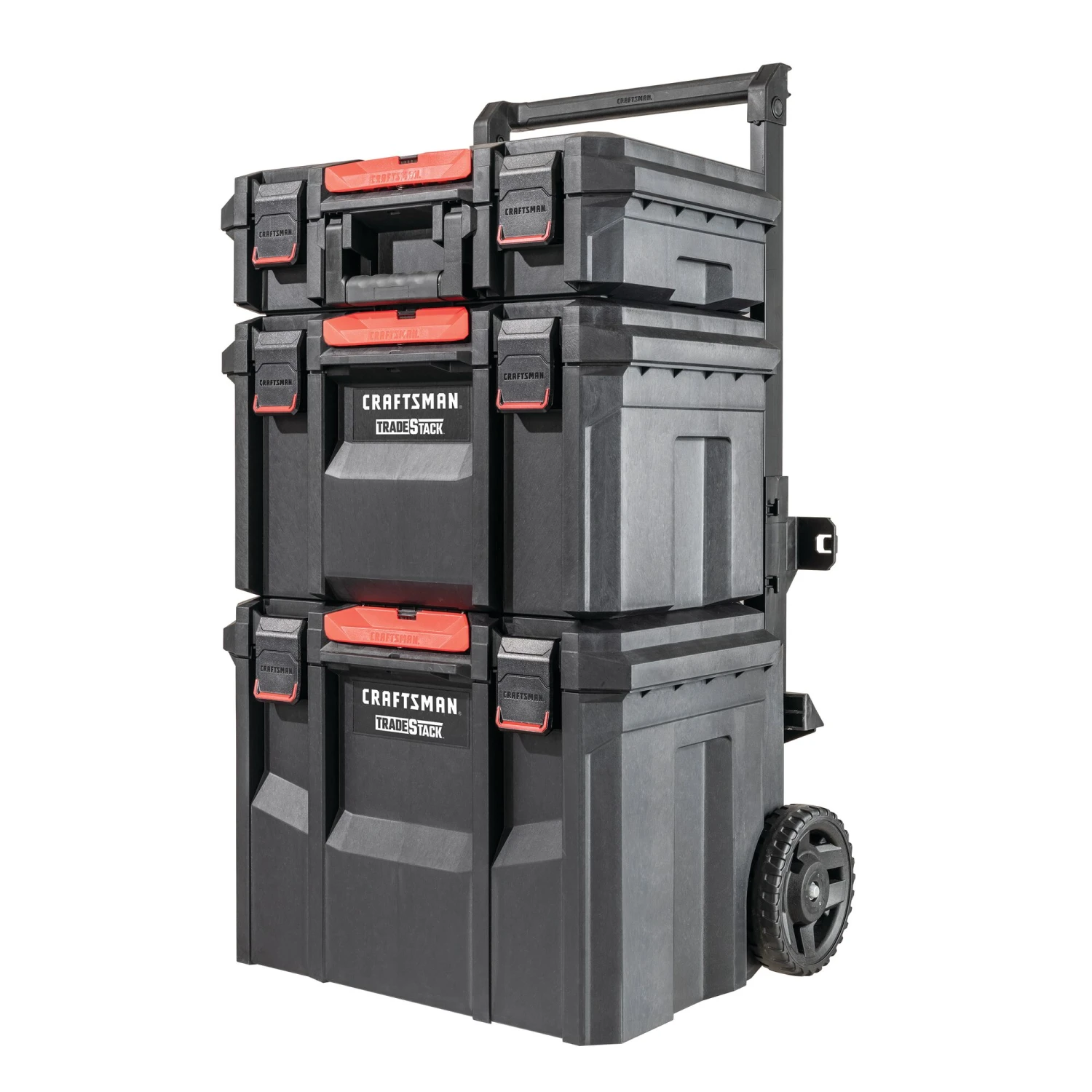 Suitable for any outdoor job or project, the TRADESTACK™ 22-in Rolling Tower Premium Storage Stack includes a suitcase, deep toolbox, and a rolling unit. The TRADESTACK™ units connect to each other, automatically stacking via a drop and lock mechanism and easily separating with a one-touch release. They are IP65 dust and water resistant, have a large storage space to fit large and heavy tools, and feature durable 7-in wheels that enable smooth mobility for convenient transport to any destination. Compatible with VERSASTACK™ modules, and CRAFTSMAN® organizers and tool sets via an included adaptor, you will be ready to meet all your stackable storage needs. Made in USA with Global Materials.