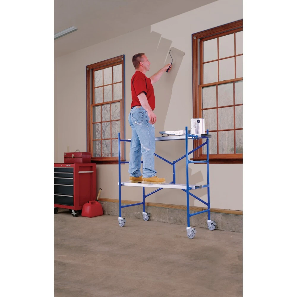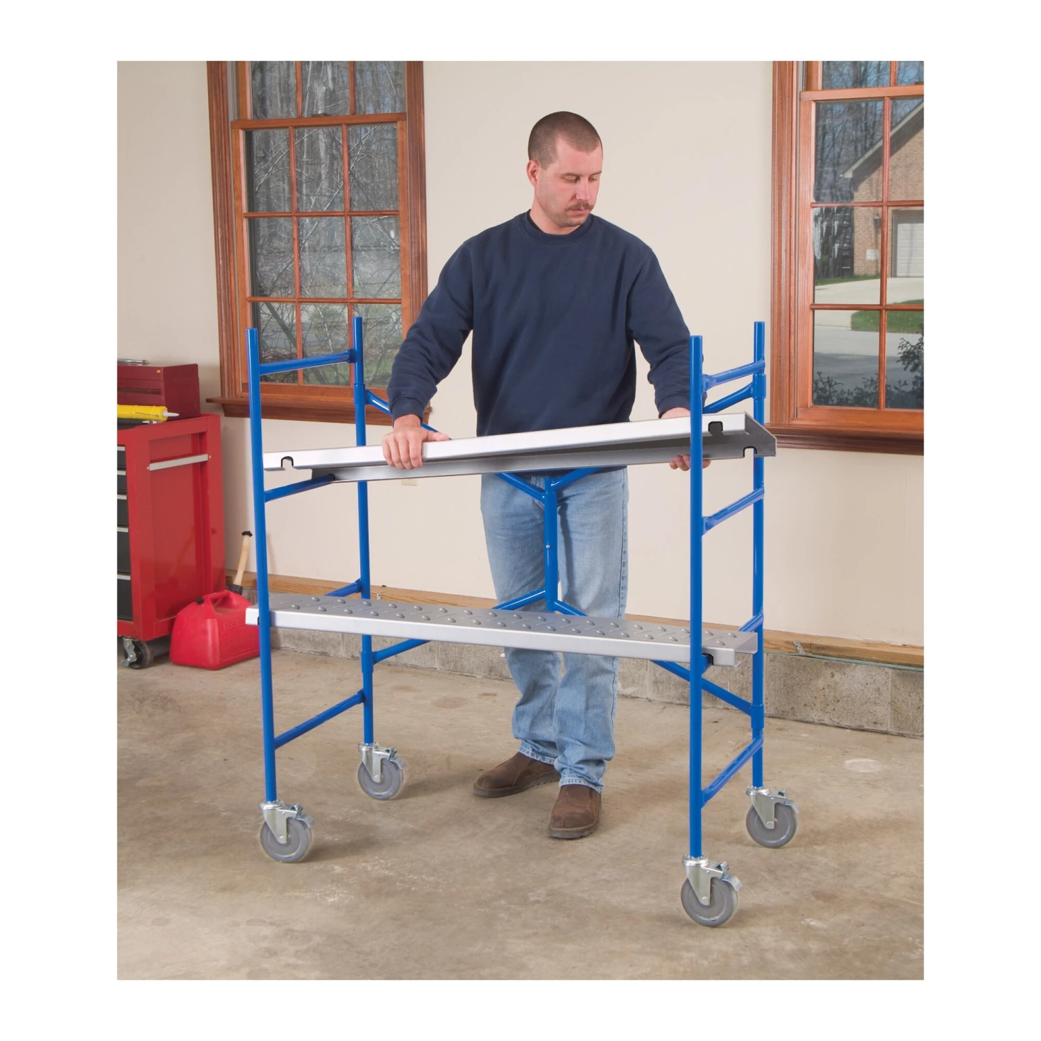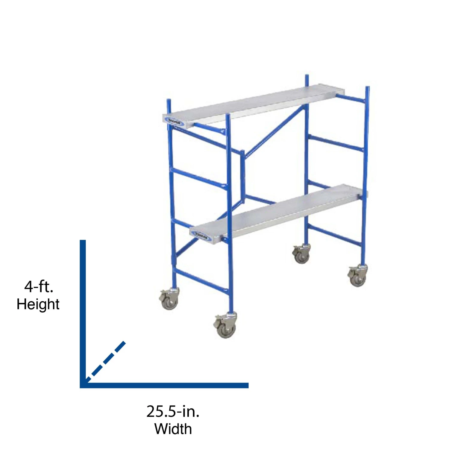 The PS-48 portable scaffold is a versatile, portable 4 Ft. scaffold that can be used as a push cart, working scaffold, storage shelf or work bench. Contains two planks (one 10 In., one 6 In. deep), with combined 500 Lbs. load capacity (250 Lbs. per plank). Planks adjust to different working heights of 12 In., 24 In. or 36 in. Non-marring wheels prevent damage to floor by securely locking into place. Multi-use S-hooks make transportation easy and are ToolLasso® ready.