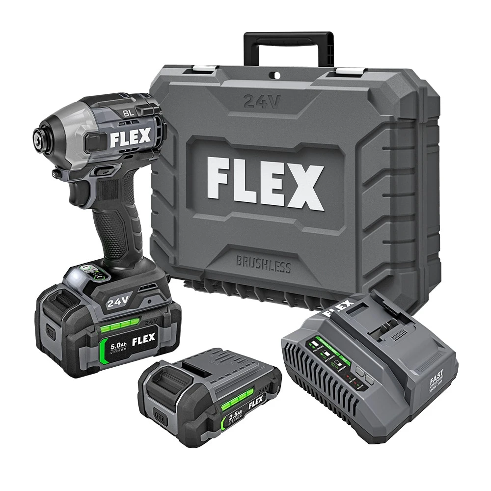 - FLEX 24V CROSS COMPATIBILITY – Compatible with all FLEX 24V batteries, chargers and tools. This kit includes (1) 2.5Ah Lithium-Ion Battery, (1) 5.0Ah Lithium-Ion Battery and 160W Fast Charger