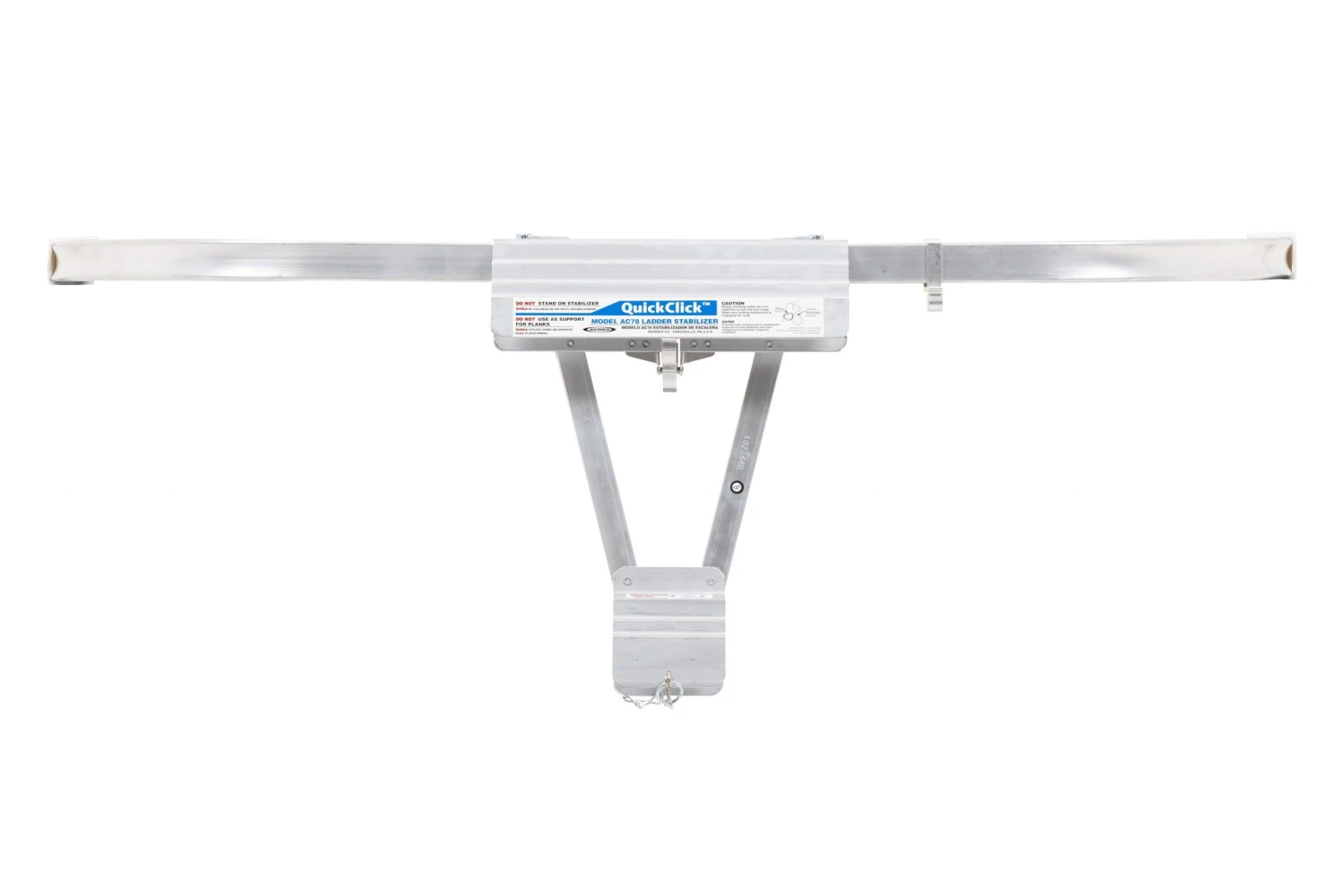 AC78 Quick Click™ stabilizer spans 44 In. and provides a standoff of 10 in. Requires no tools to attach to ladder. Spring-loaded locking latch makes it easier and quicker to install/remove than any other stabilizer on the market. Mar-resistant rubber end caps protect the work surface. Paint can hook is included.