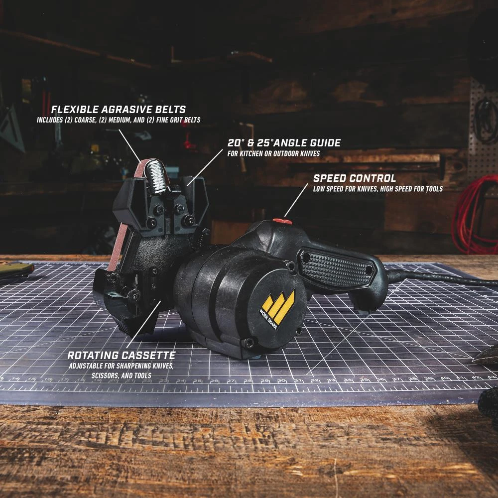 - Sharpens every knife you own using Flexible Abrasive Belts and a redesigned Sharpening Guide