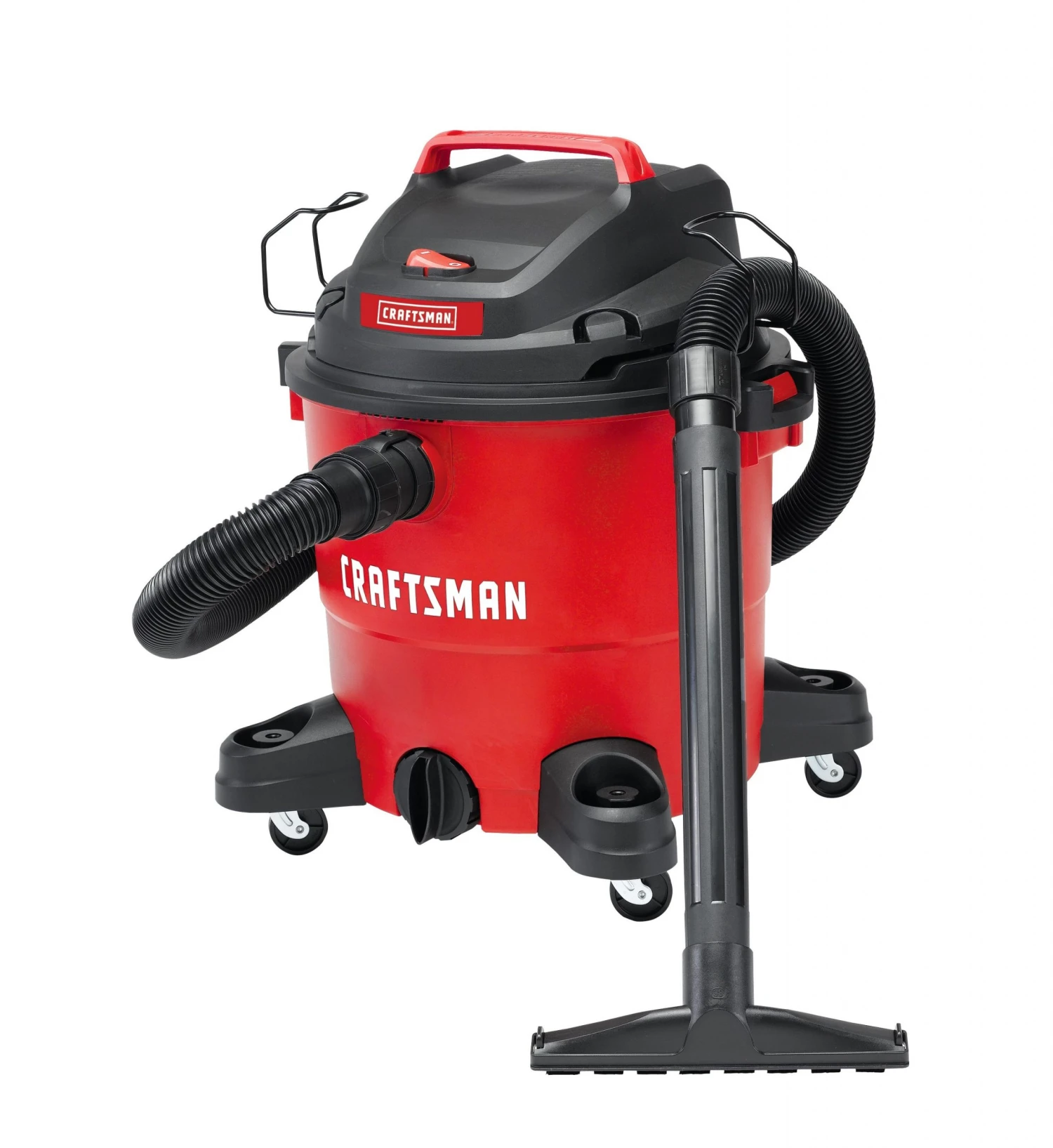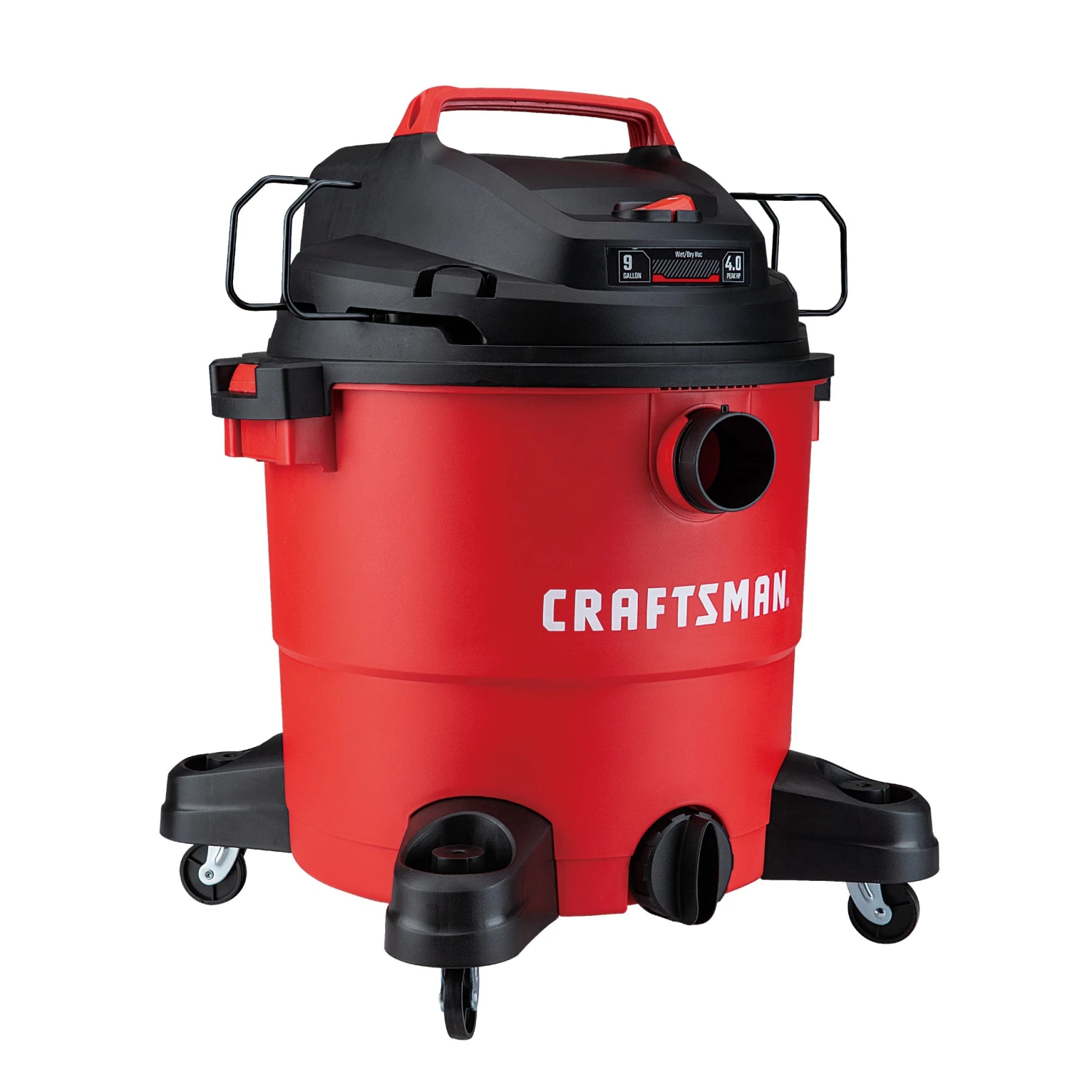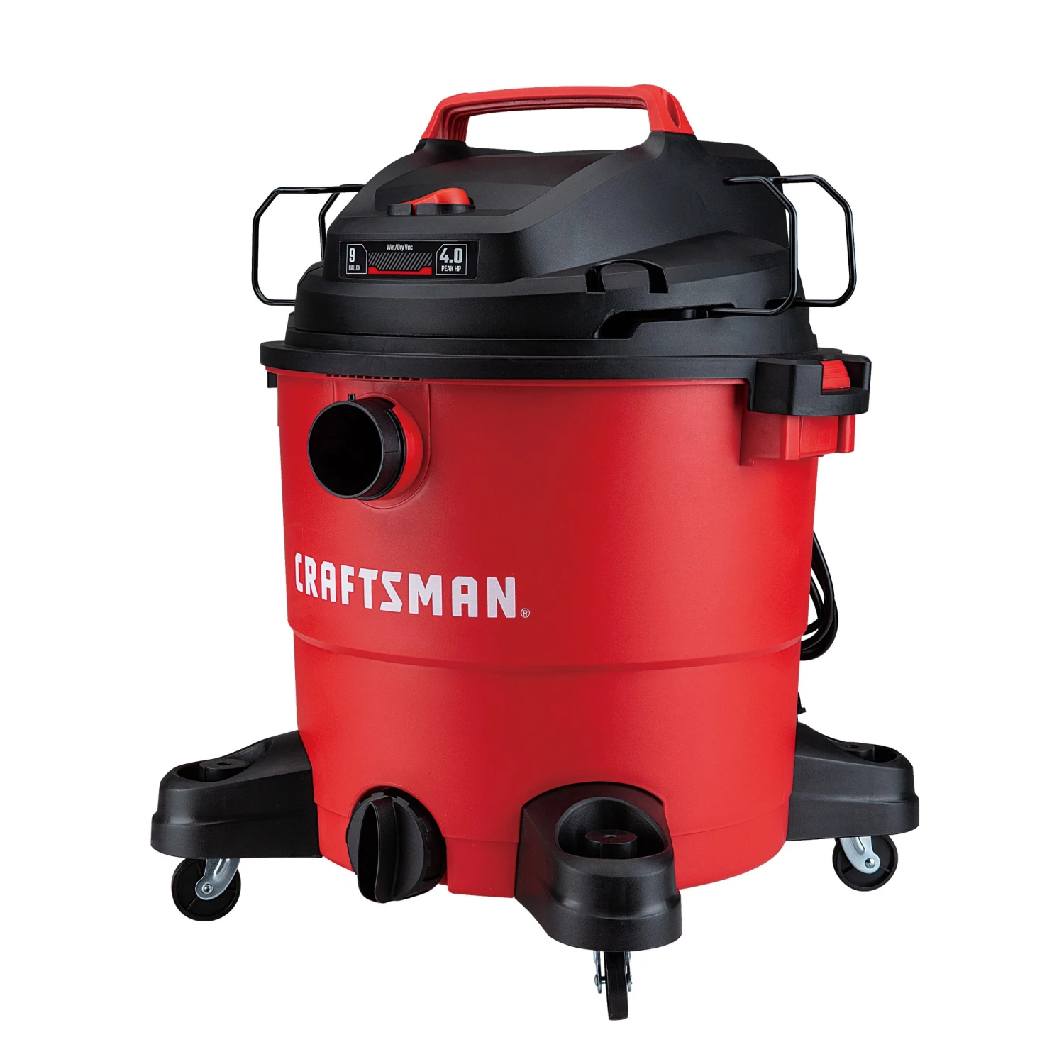 The Craftsman 9-gallon wet/dry vacuum is designed to tackle tough projects around the home, shop, or jobsite. The 9-gallon tank offers plenty of room and the 4 Peak HP motor makes sure the tank gets filled, whether it’s with sawdust from the shop or drywall from the jobsite. The on-board hose, power cord, and accessory storage allow you to keep all of your attachments organized and in one place. The wide-set casters and balanced top handle make for convenient transportation from one place to the next. Turning this vacuum into a blower to remove debris from your yard or workspace could not be easier – all it takes is a simple conversion.