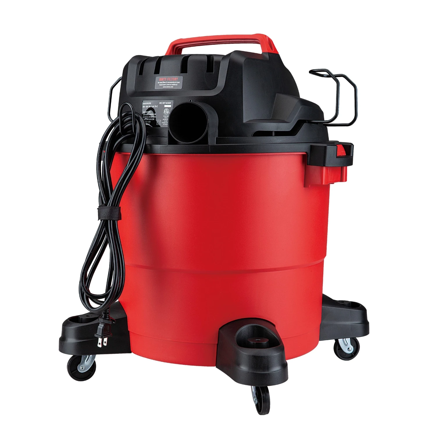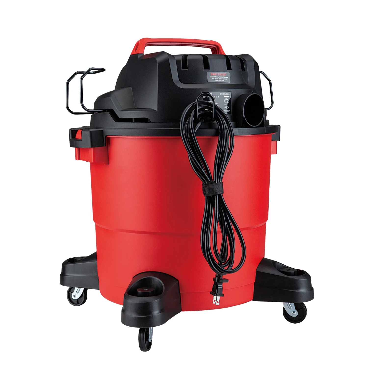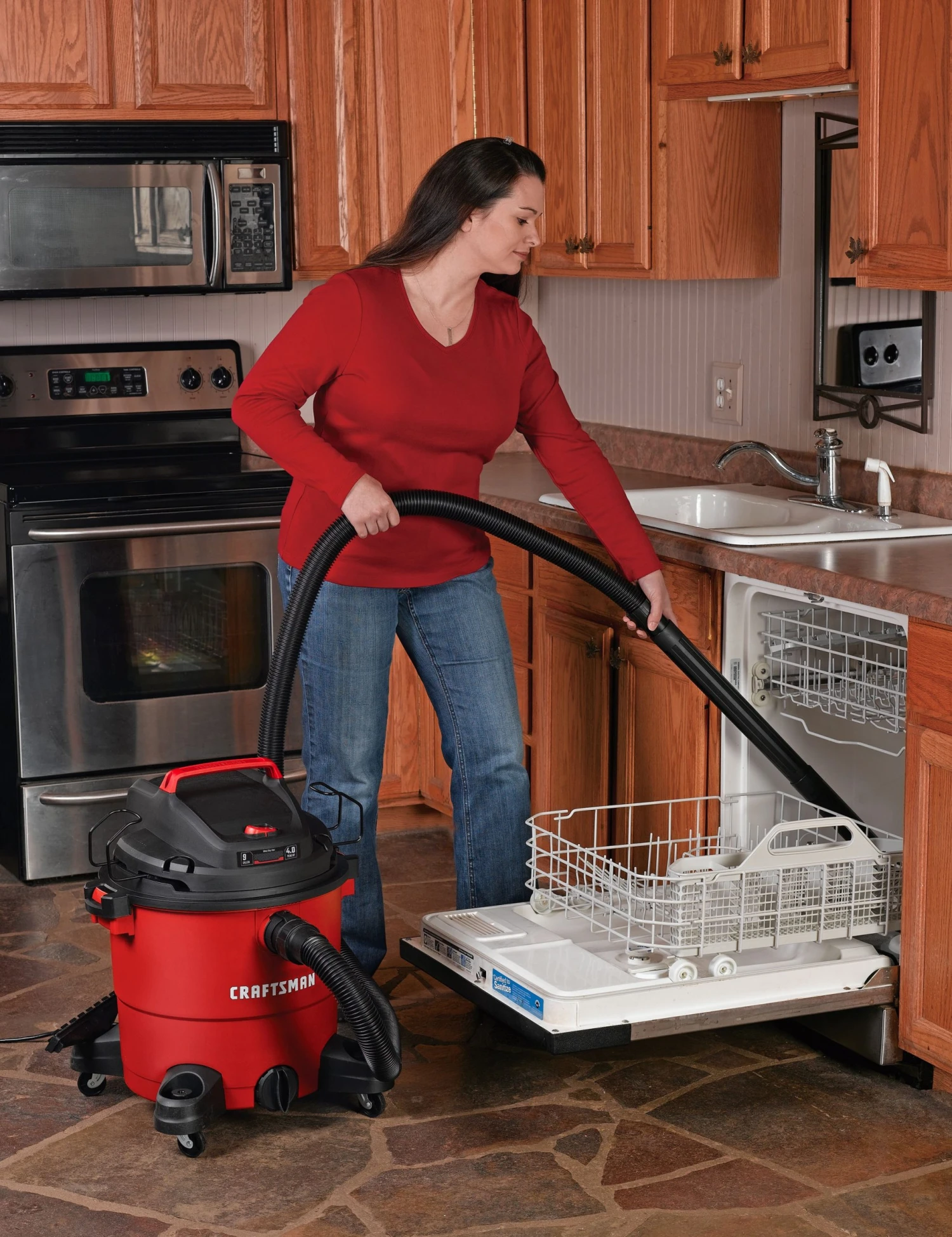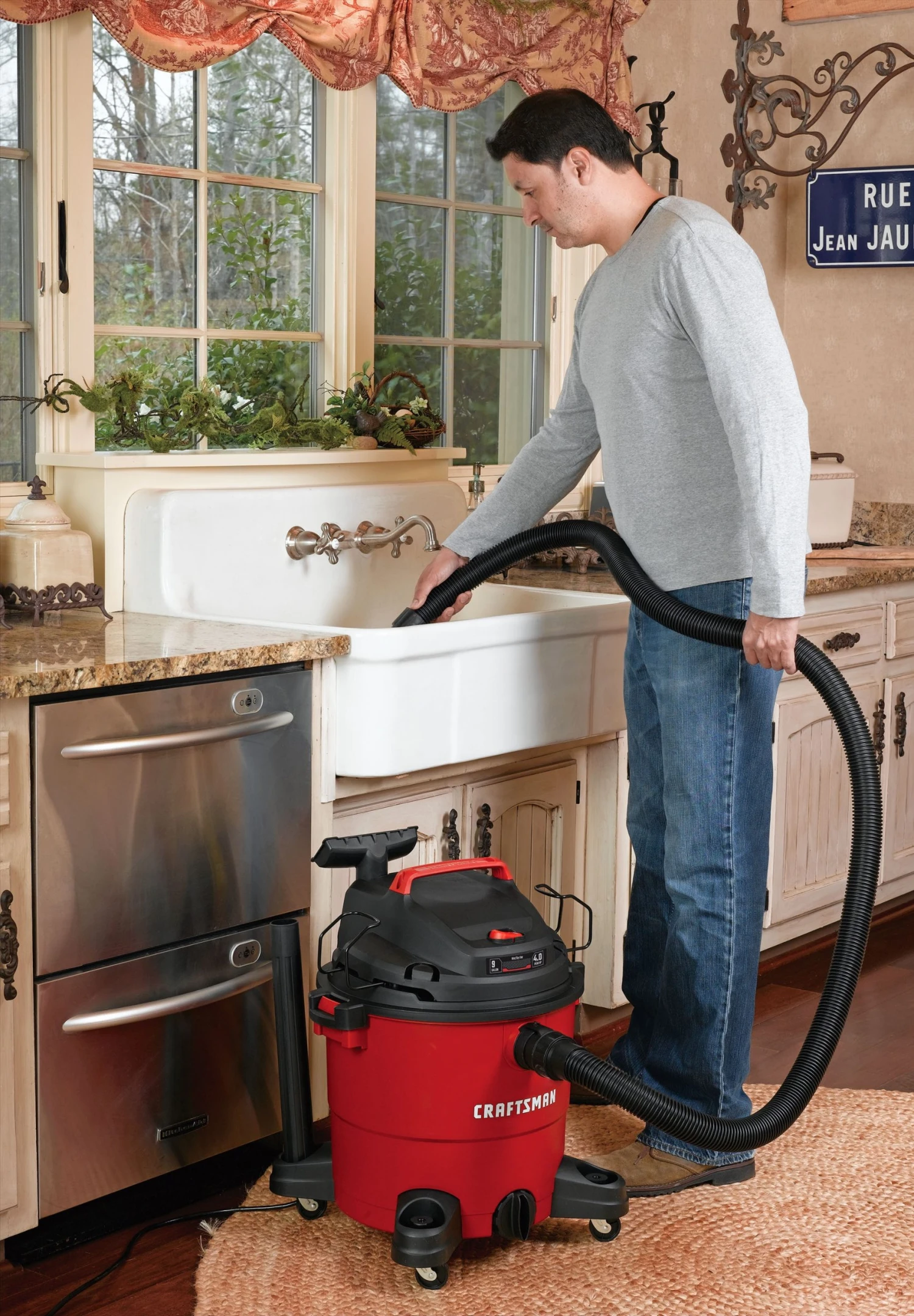 The Craftsman 9-gallon wet/dry vacuum is designed to tackle tough projects around the home, shop, or jobsite. The 9-gallon tank offers plenty of room and the 4 Peak HP motor makes sure the tank gets filled, whether it’s with sawdust from the shop or drywall from the jobsite. The on-board hose, power cord, and accessory storage allow you to keep all of your attachments organized and in one place. The wide-set casters and balanced top handle make for convenient transportation from one place to the next. Turning this vacuum into a blower to remove debris from your yard or workspace could not be easier – all it takes is a simple conversion.