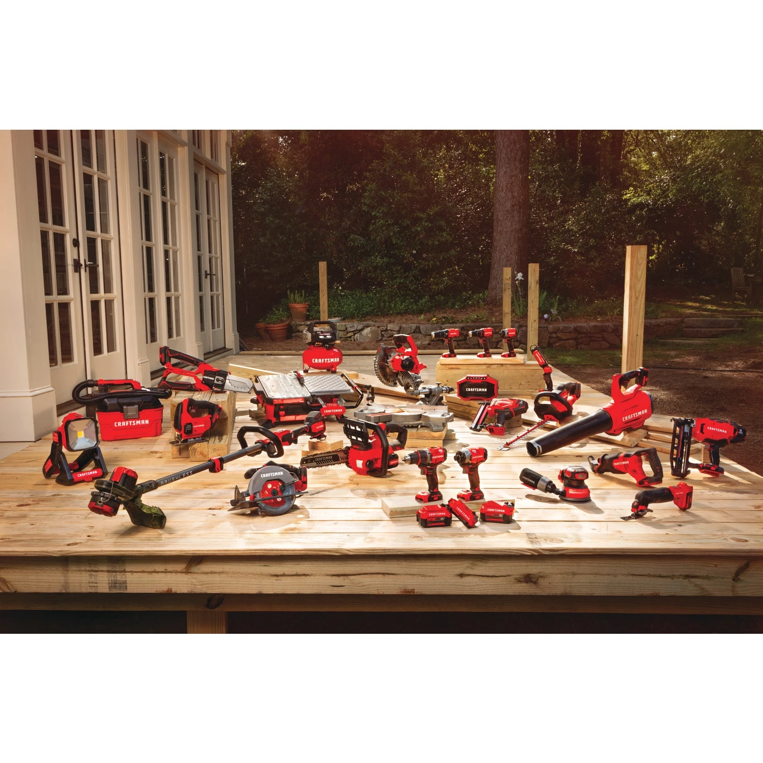 The Craftsman V20 Brushless 2.5-Gallon brushless cordless compressor offers all of the convenience and portability of cordless but lets you continue to use the pneumatic tools you already own. Featuring a brushless motor for improved performance, each battery charge allows you to drive up to 700-nails, giving you the runtime you need to complete your applications.