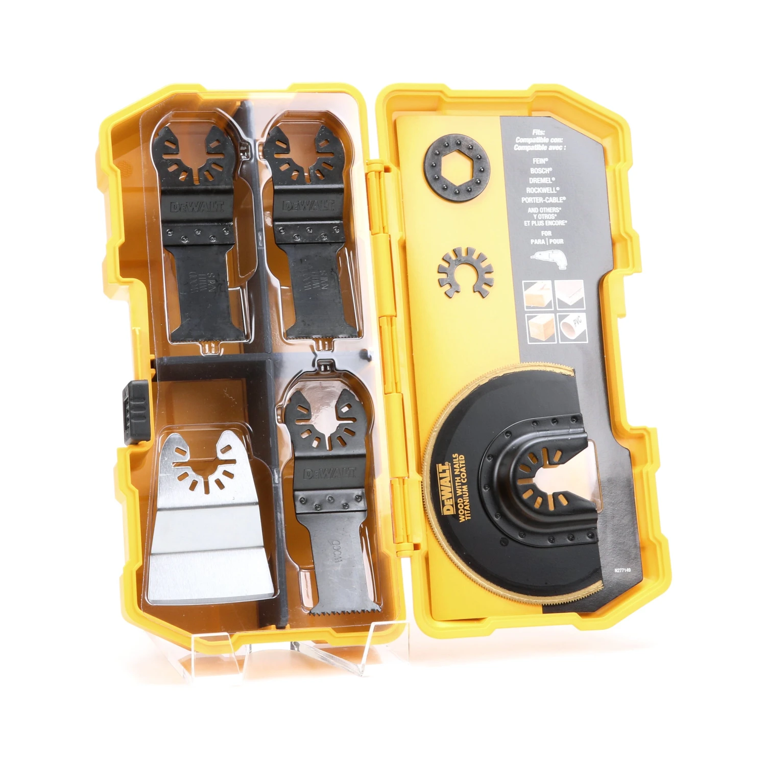DEWALT Oscillating Blades are optimized to cut through wood, drywall, wood with nails, and metal. Bi-Metal technology provides wear resistance when cutting hard materials. Universal Fitment design allows for quick, tool-free blade change.