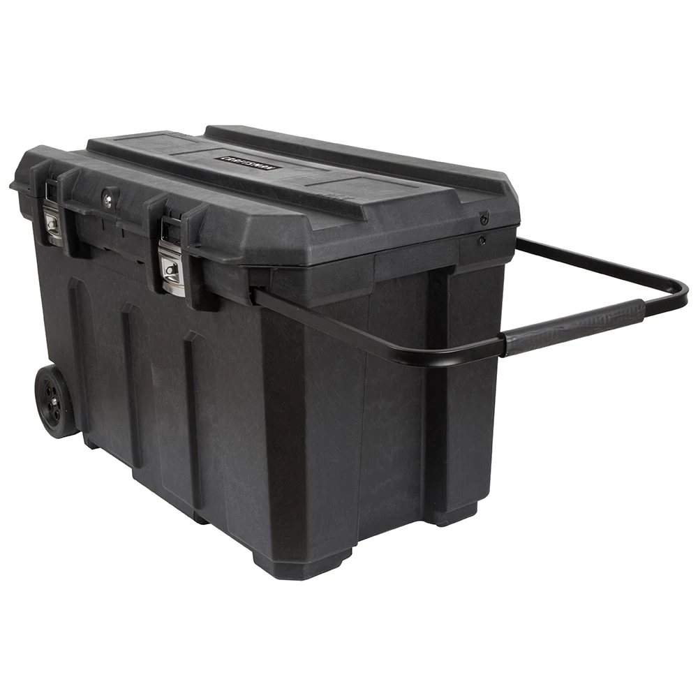 With a 50-gal capacity, the CRAFTSMAN® 37-in 50 gal wheeled lockable tool box has a variety of storage applications for professional or home use. This lockable roller tool chest is made of high density structural foam and has a soft grip handle and rubber coated wheels that allow for easy maneuverability.