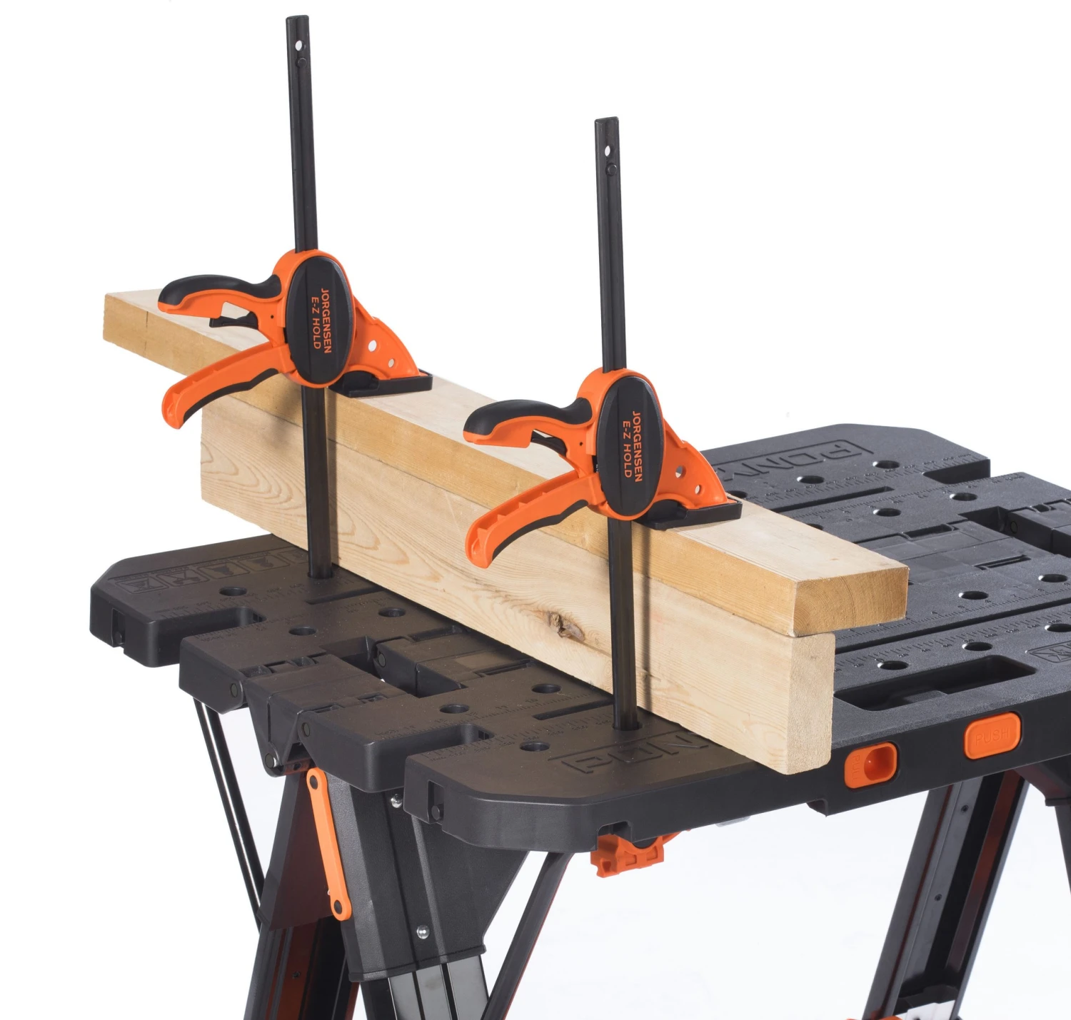 - Includes two Jorgensen 12-in 300-lb EZ-Hold trigger clamps